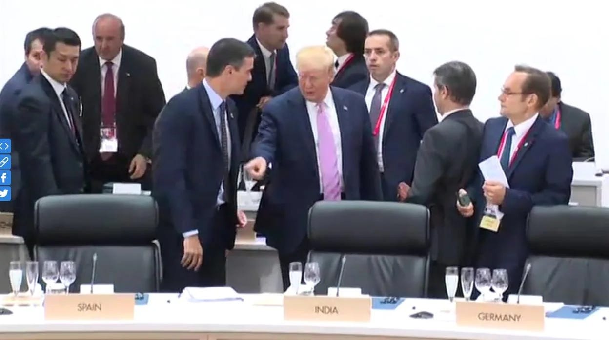 Solo basta recordarle persiguiendo a Trump para que los periodistas le sacaran una foto con él en una de las escenas mas vergonzantes de las cumbres mundiales, o aquella otra en la que Trump le señala el asiento para que se siente, o como lo arrinconan en la Cumbre de la OTAN tras negarse a elevar el gasto en Defensa, en una clara demostración de lo que es liderar desde las esquinas en vez desde el centro del poder.