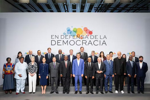 En ausencia de Miley, que no debe de ser demócrata por ser de ultraderecha según las especificaciones sanchistas, asiste por Argentina Axel Kicillof, ministro que fue en la cleptocracia de Cristina Fernández de Kirchner y hoy gobernador de la provincia de Buenos Aires. El mas decente asistente de la lista desde luego que fue Lula da Silva, sin duda un hombre pragmático, pero cómo olvidar las corruptelas del Partido de los Trabajadores y el escándalo Lava Jato.